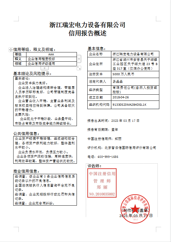 信用評價機構:北京智云信國際信用評價有限公司 |